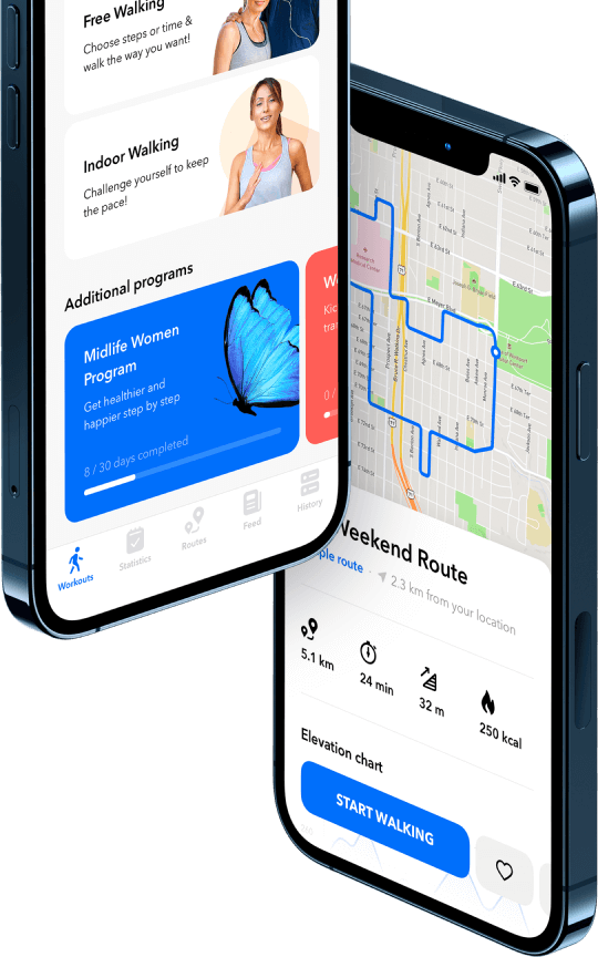 Pedometer, indoor walking coach and personalized programs for a healthy and active lifestyle.